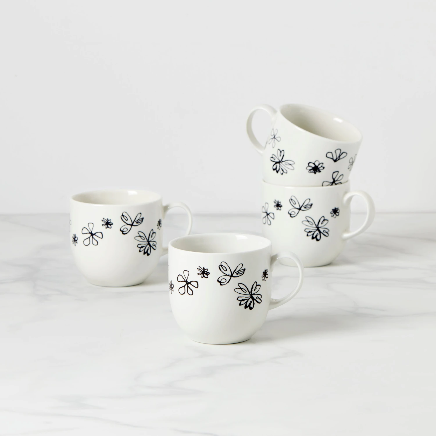 Remember daydreaming in school, waiting for the bell to ring and sketching little flowers in your notebook? This fresh new pattern from kate spade new york takes you back to that carefree chapter in your life with its budding doodles in a black-and-white motif. The original, hand-drawn artwork is featured on four adorable mugs.