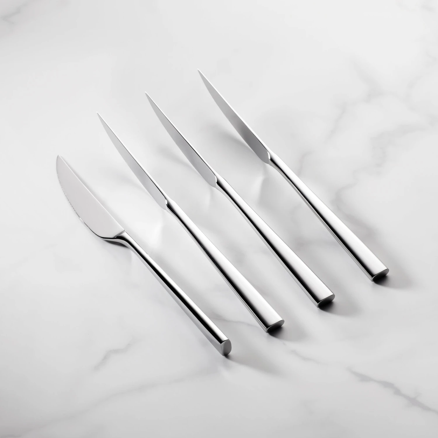 - Crafted from high-quality stainless steel, the Kate Spade Malmo 4-Piece Steak Knife Set ensures durability and long-lasting performance. These knives are designed to maintain their sharpness and elegance over time.