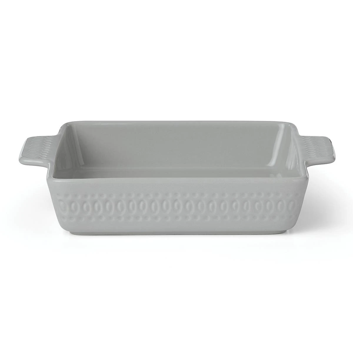 Made from glazed stoneware, the Kate Spade New York Willow Drive Collection is defined by its pretty, eyelet-inspired detail and sets the scene for any meal–whether it’s a homemade, multi-course masterpiece or takeout. The Willow Drive Grey Square Baker is microwave, dishwasher, and over-safe up to 400 degrees.