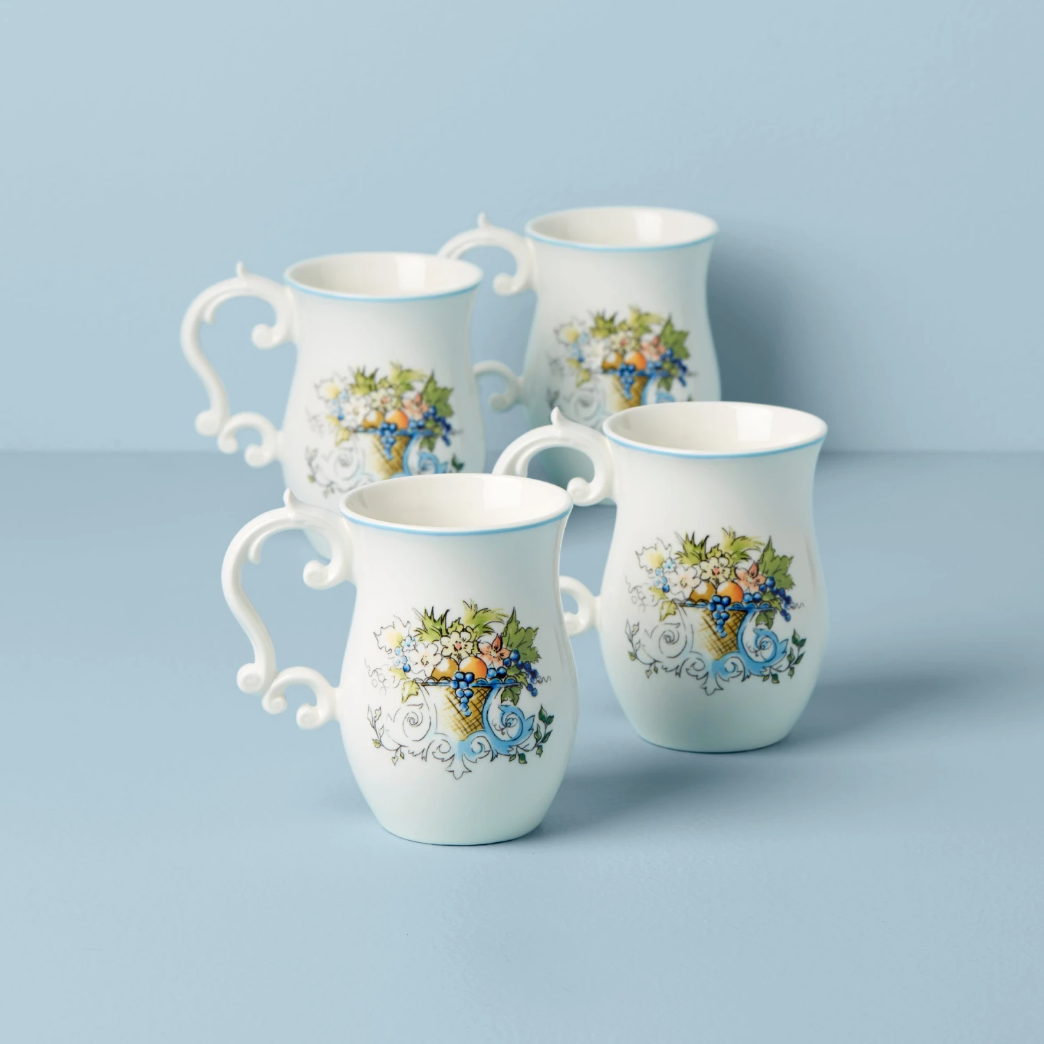 This artistic update of our 1918 Autumn pattern features lush watercolors and a masterpiece-in-the-making sketchbook effect. Autumn Studio is a love letter to our legendary collection; featuring the same cornucopia motif now on durable white porcelain that is both dishwasher and microwave safe. This 4-piece mug set honors our history and modernizes it for today with its beautiful ornate handles, curved design and painterly finish.