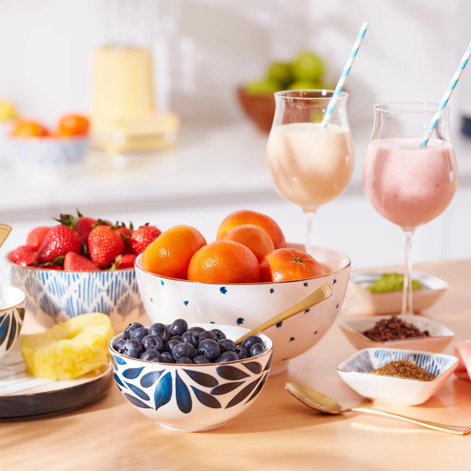 Everyone’s favorite nesting dinnerware set is now available in our Blue Bay collection. Featuring patterns of dots, stripes, ikats, and leaves with a rich blue color, this set stows six bowls and two plates inside. Take it apart to use or keep it together for a statement piece!